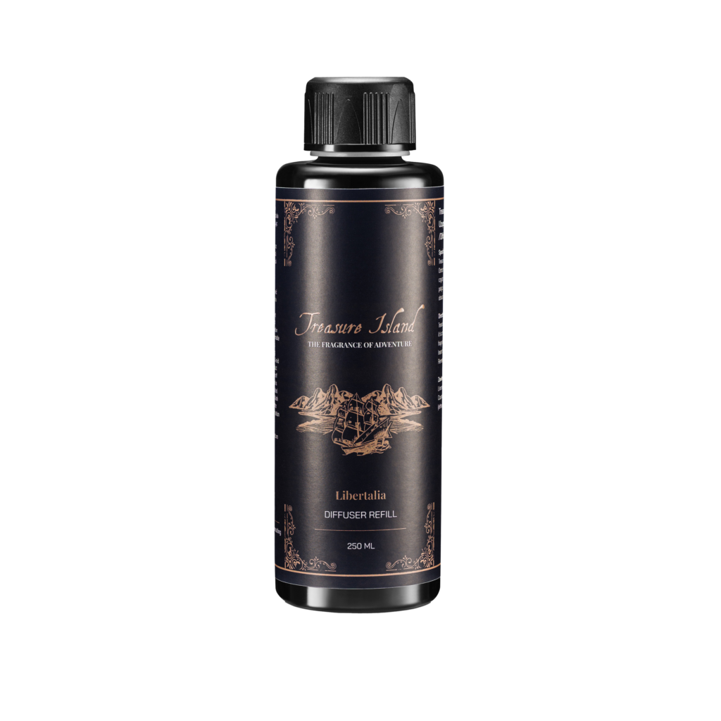 Zapach Libertalia od Treasure Island dla dyfuzora zapachowego to zmysłowa opowieść zainspirowana legendarną historią kolonii pirackiej Libertalia. Jest to zapach, który przenosi nas na odległe, egzotyczne wybrzeża, wśród dzikiej przyrody i wolności, jaką niosło ze sobą życie pirata.